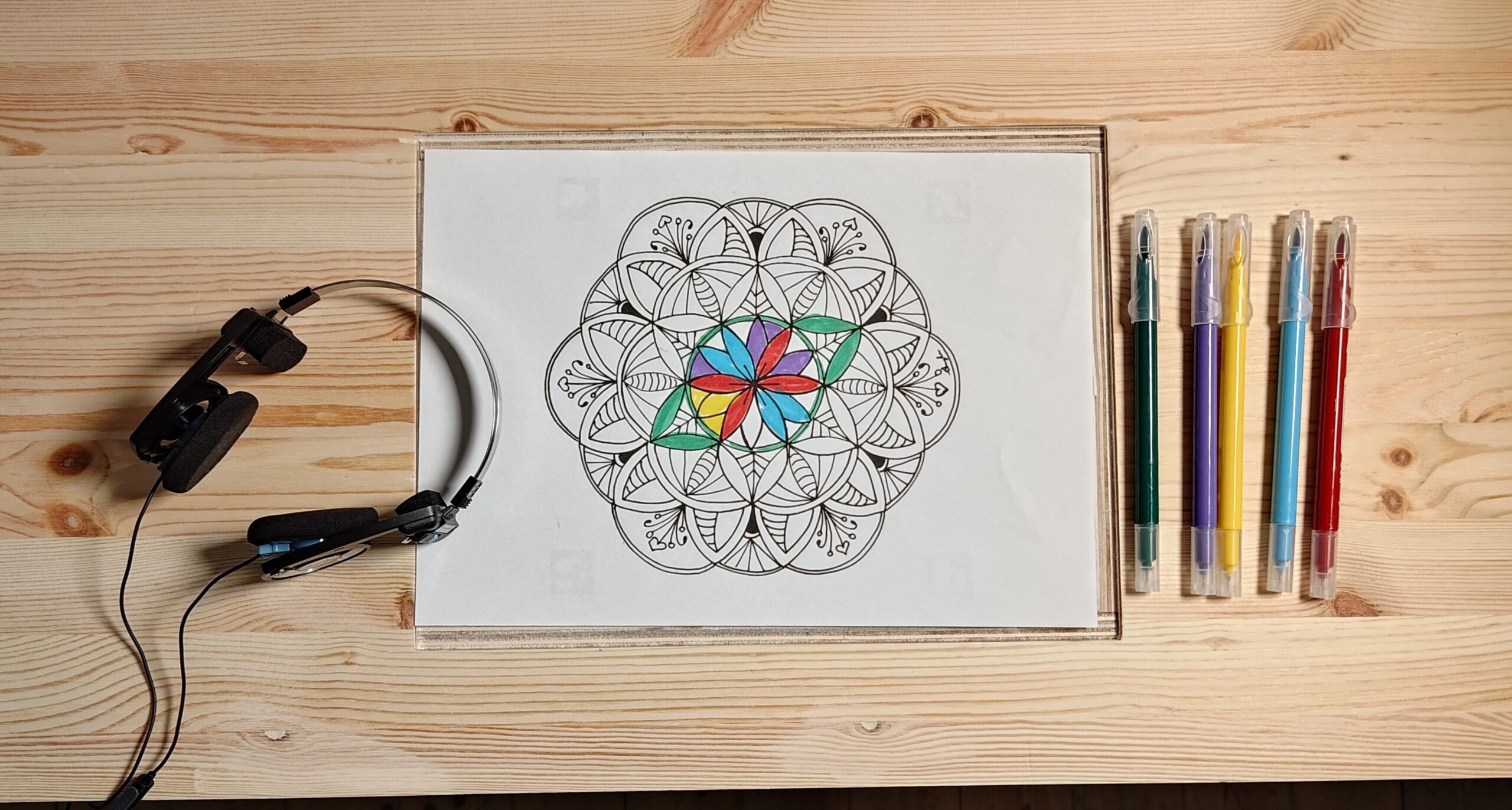 Modern life is increasingly defined by elevated stress and constant digital bombardment, creating a significant challenge for individuals seeking moments of peace and mental respite. Mandala coloring, as well as listening to music, are both recognized as tools for reducing stress and promoting a better mental state. The project proposes an innovative integration of these two methods.