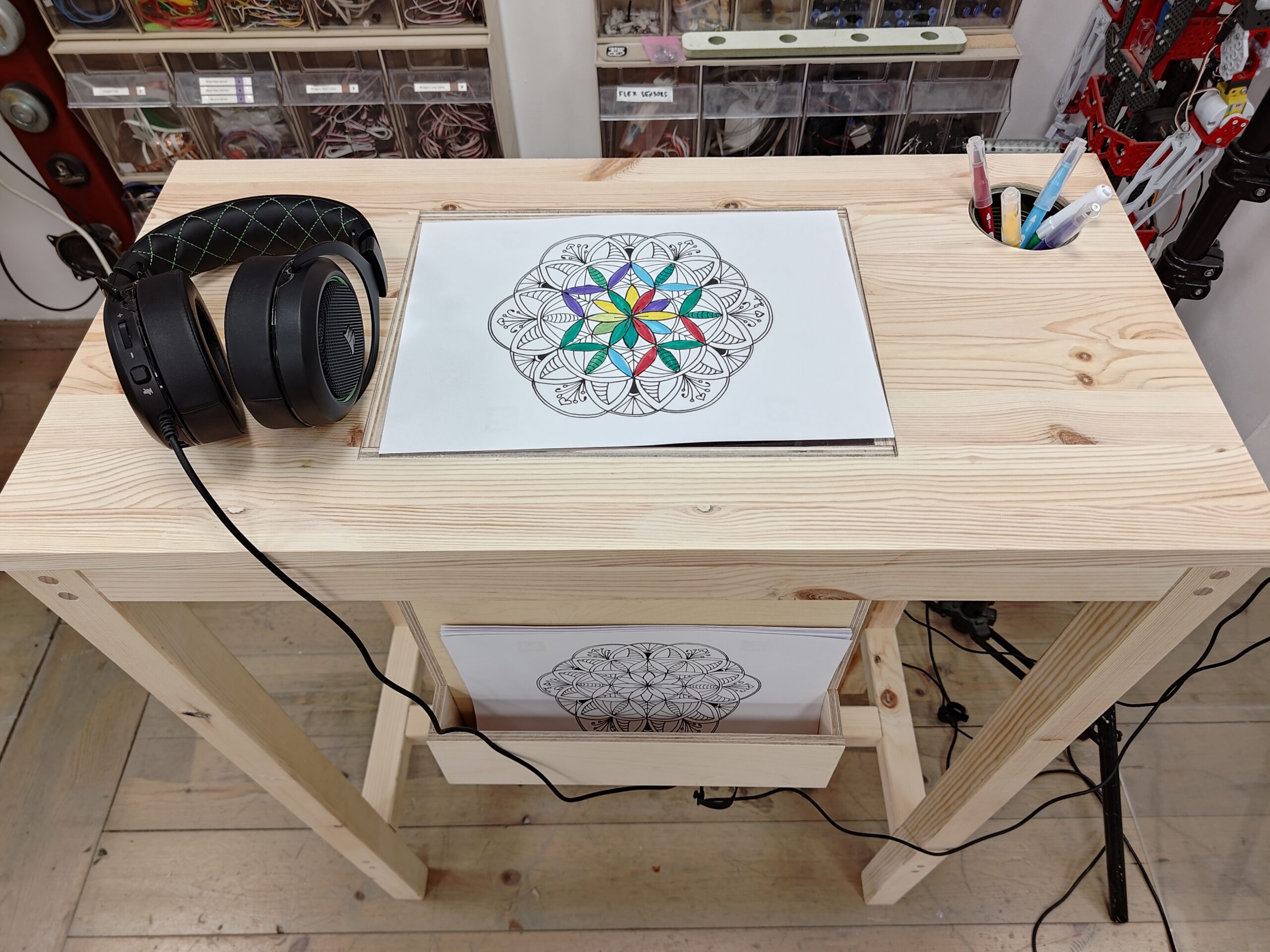 Our mandala coloring station transforms artistic expression into a unique musical experience. As each participant colors, the system tracks their progress in real-time, linking different mandala sections to specific musical instruments and assigning a distinct note to each color. The music gradually unfolds, creating an immersive and calming interactive journey.
